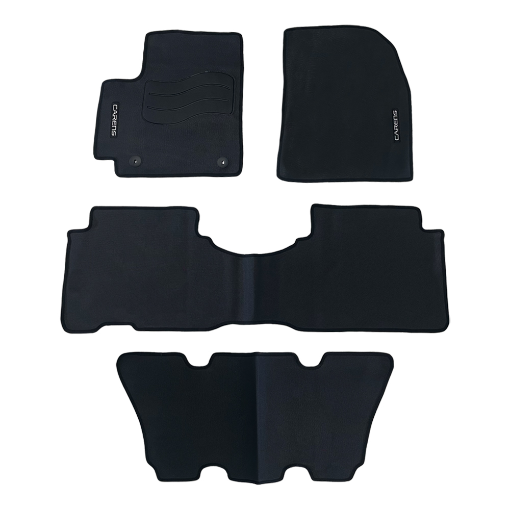 Pisos de alfombra de 4 piezas con calce perfecto con logo Carens en los pisos delanteros. Disponen de enganches de sujeción, además incorporan el sistema antideslizante Maxpider que no daña el piso del automóvil.